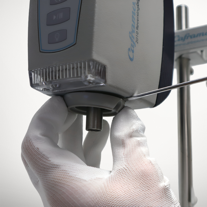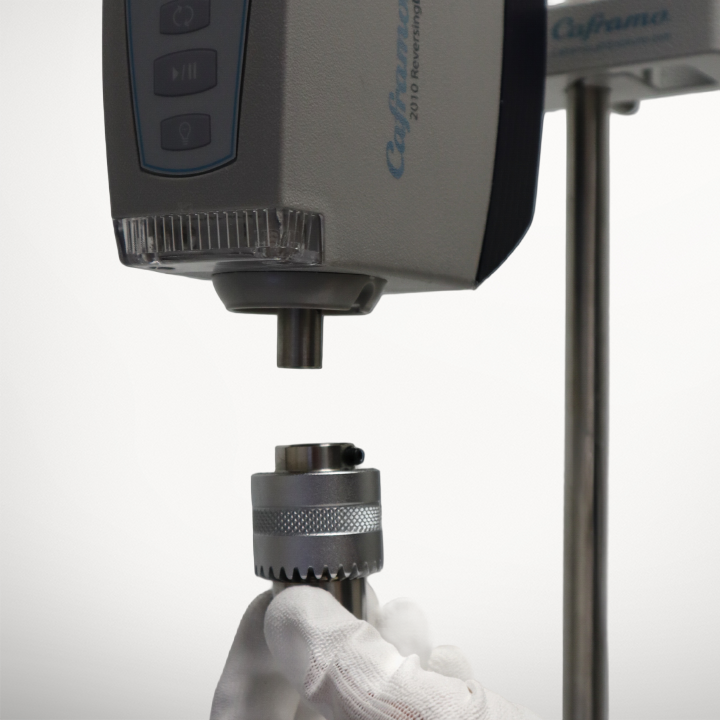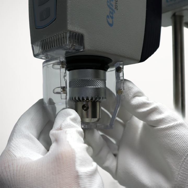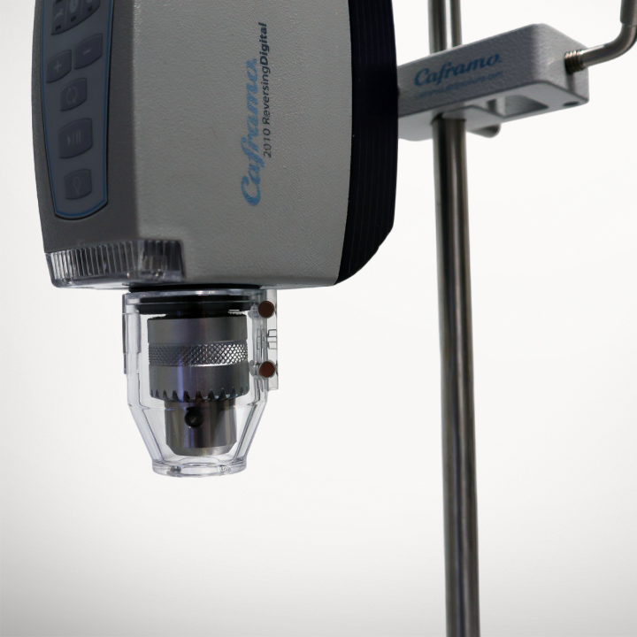 This page includes instructions to install the Chuck Guard Kit (CG1KIT) on your Caframo overhead stirrer.